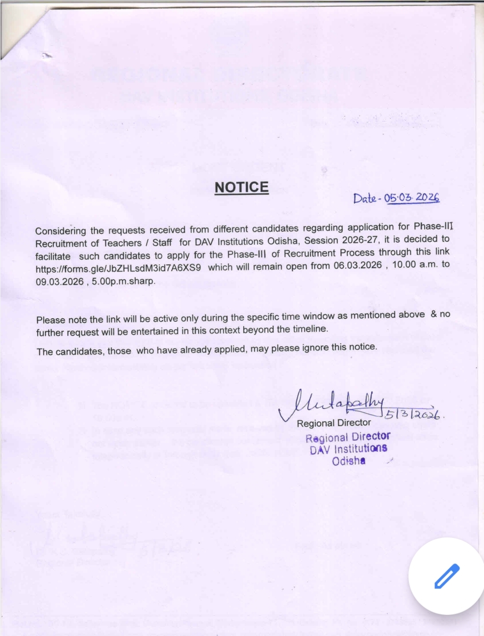 EXTENSION OF DATE FOR PHASE-III RECRUITMENT PROCESS.